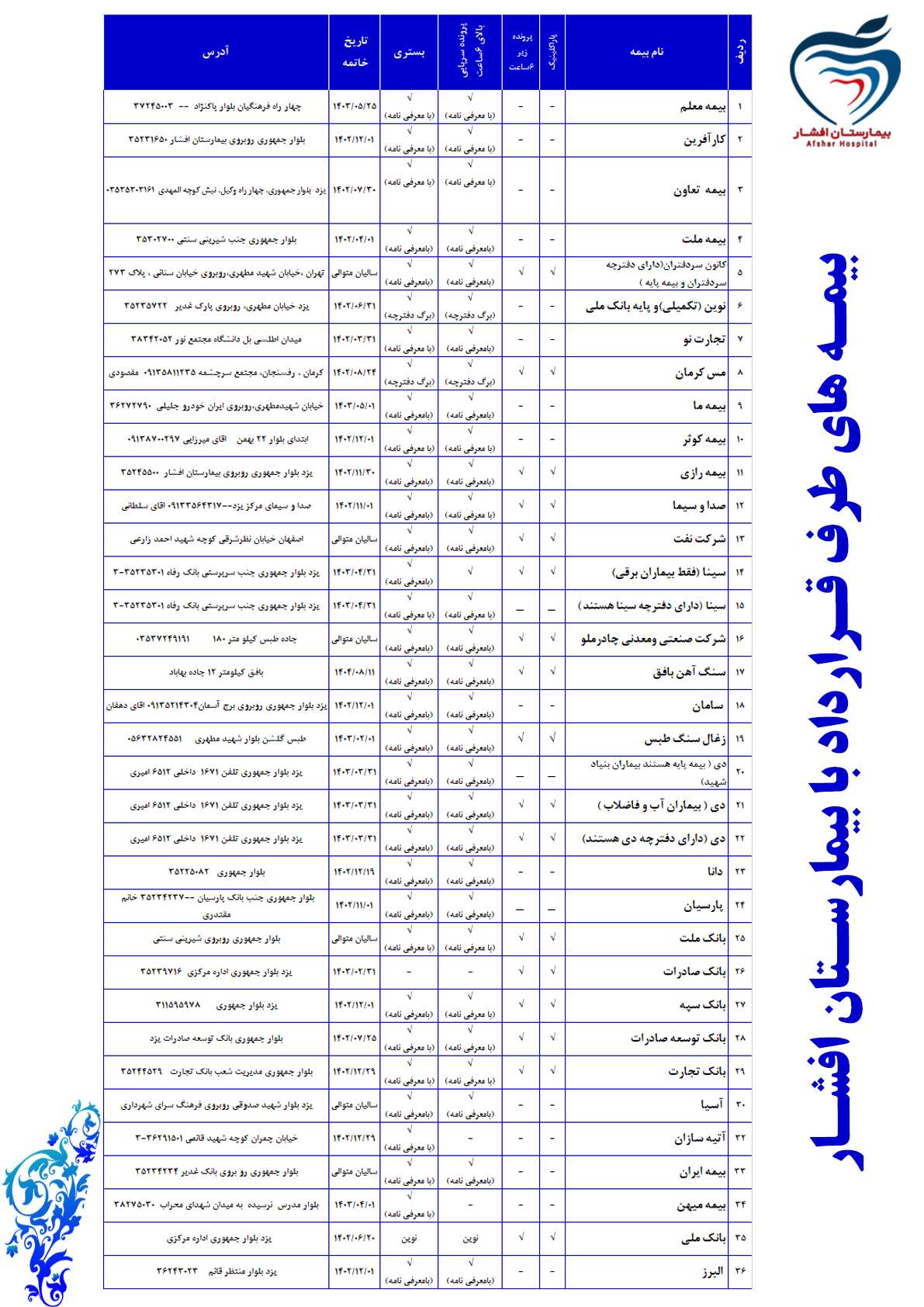 سیاستهای اصلی بیمارستان افشار