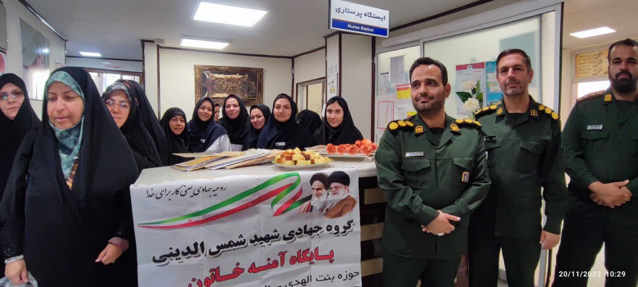 به گزارش روابط عمومی، بسیجیان خدوم ناحیه مقاومت بسیج شهید الله دادی به همراهی بانوان بسیجی پایگاه آمنه خاتون مهرآوران با حضور در بخش زنان و زایمان بیمارستان افشار، سالروز ولادت حضرت زينب سلام الله علیها و روز پرستار را  با اهدای شاخه گل تبريک گفتند.