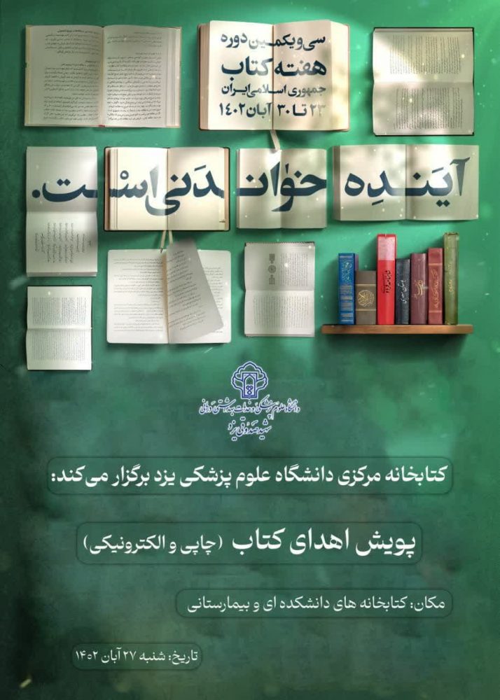 به مناسبت هفته کتاب و کتابخوانی، پویش اهدای کتاب به کتابخانه ها به پیشنهاد کتابخانه مرکزی و معاونت تحقیقات و فناوری برگزار شد. کتابخانه بیمارستان افشار نیز با قرار دادن میز و نصب پوستر مربوطه این امر را اطلاع رسانی کرد. پرسنل و دانشجویان بیمارستان با اهدای کتاب به کتابخانه بیمارستان در این پویش شرکت کردند و این هفته را گرامی داشتند.
