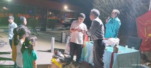 به مناسبت هفته دفاع مقدس مراسمی در محوطه ورودی اصلی بیمارستان افشار برگزار شد. این مراسم که با تشییع پیکر مطهر شهید ابراهیم زمانی به سالن اصلی بیمارستان آغاز شد، با اقامه نماز مغرب و عشاء و سپس روایتگری حمیدرضا سهیلی و خاطره گویی و تحلیل جنگ توسط مشهدی بافان و اجرای گروه سرود بچه های غدیر ادامه یافت و با اجرای مسابقه بین شرکت کنندگان، اهدای جوایز مسابقه ویدیویی بزرگداشت زبان و ادبیات فارسی و سپس اهدای هدیه به تمامی کودکانی که در غرفه نقاشی حاضر شده بودند به پایان رسید. مجری این مراسم همکار واحد حفاظت فیزیکی بیمارستان مجید برنا و قاری قرآن و موذن برنامه نیز همکار دیگر این واحد عبدالله رحیمی بودند. شایان ذکر است حضار این مراسم، شام را میهمان غذای متبرک حضرت صاحب الزمان (عج) بودند.