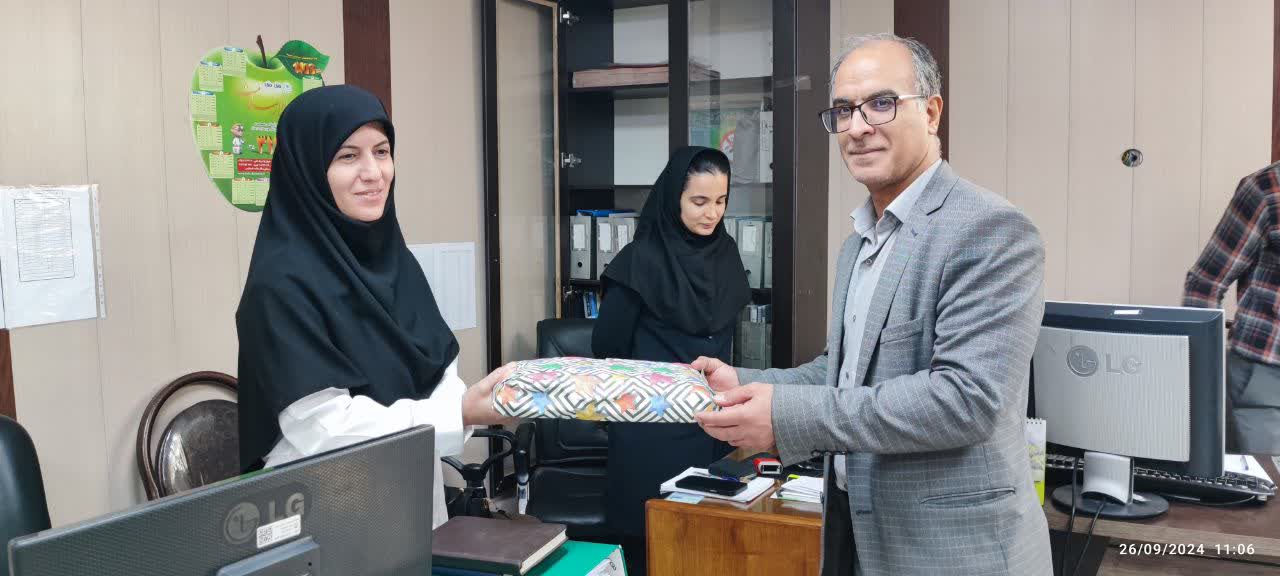 همزمان با ۲۶ سپتامبر و روز جهانی بهداشت محیط، دکتر عباسعلی معظمی و حمیدرضا سهیلی با حضور در محل کار مهناز صالحپور و صفویزاده کارشناسان بهداشت محیط و بهداشت حرفهای بیمارستان، از زحمات این عزیزان با اهدای کادو قدردانی کردند.