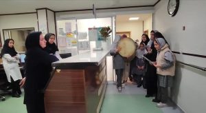 به مناسبت روز پرستار، شورای دانشآموزی دبستان دخترانه نورایمانی از ناحیه یک آموزش و پرورش با همراهی مسئولان مدرسه با حضور در بخش جراحی زنان بیمارستان با اهدای گلدان گل و شیرینی از پرستاران این بخش تجلیل نموده و با قرائت دکلمه و دف نوازی روز پرستار را گرامی داشتند.