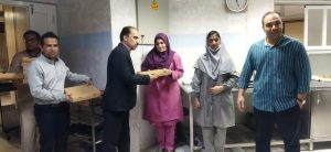 به گزارش روابط عمومی، مورخ بیست و پنجم اردیبهشت ماه، سعید احمدزاده مدیر پشتیبانی بیمارستان به همراه مسئولین خدمات با بازدید از آشپزخانه و لنژری از همکاران پشتیبانی شاغل در این واحدها با تقدیم هدایایی که برای روز کارگر تهیه شده بود، تقدیر کرد.