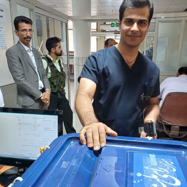 دقایقی بعد از استقرار صندوق رأی در بیمارستان افشار، شاهد حضور حداکثری همکاران ...
